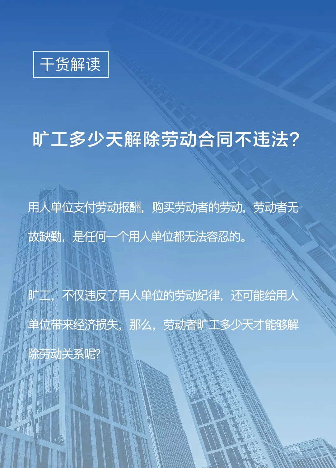 关于劳动者旷工天数问题,在国家层面,除了被废止的《用人单位职工奖惩条例》有过规定外,其他的劳动法律法规、规章、文件均未作具体规定。