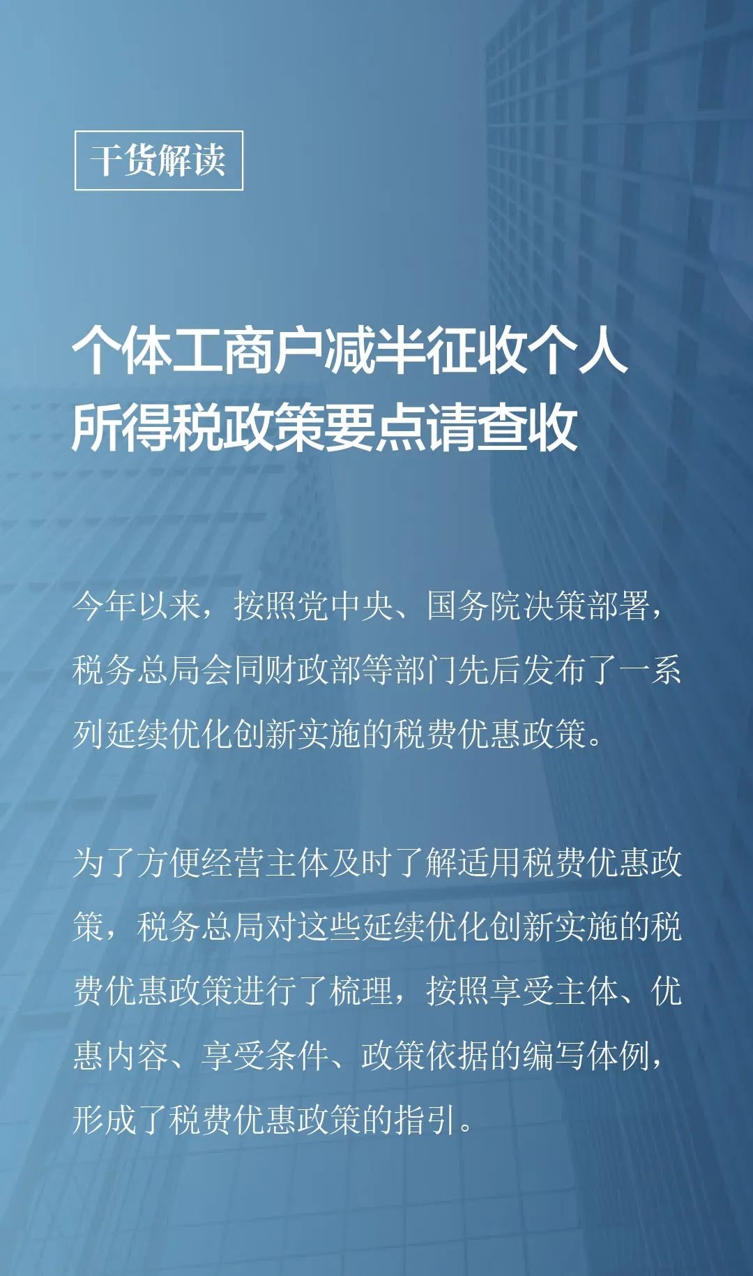 今天带你了解:个体工商户年应纳税所得额不超过100万元部分减半征收个人所得税政策