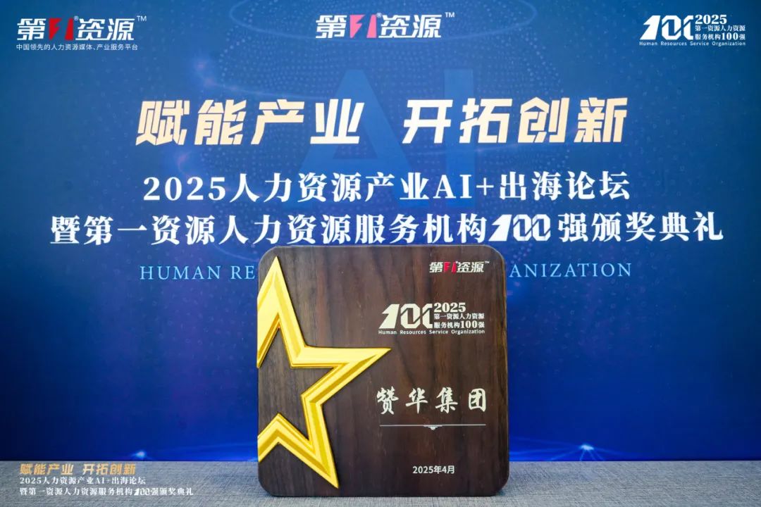 当 AI 浪潮席卷全球,人力资源服务行业迎来深度变革。备受瞩目的 “2025 人力资源服务机构 100 强” 榜单也正式揭晓,其中,赞华集团凭借卓越实力连续多年强势上榜,再次荣膺该奖项!以实力印证了赞华集团在人才服务领域的标杆企业。