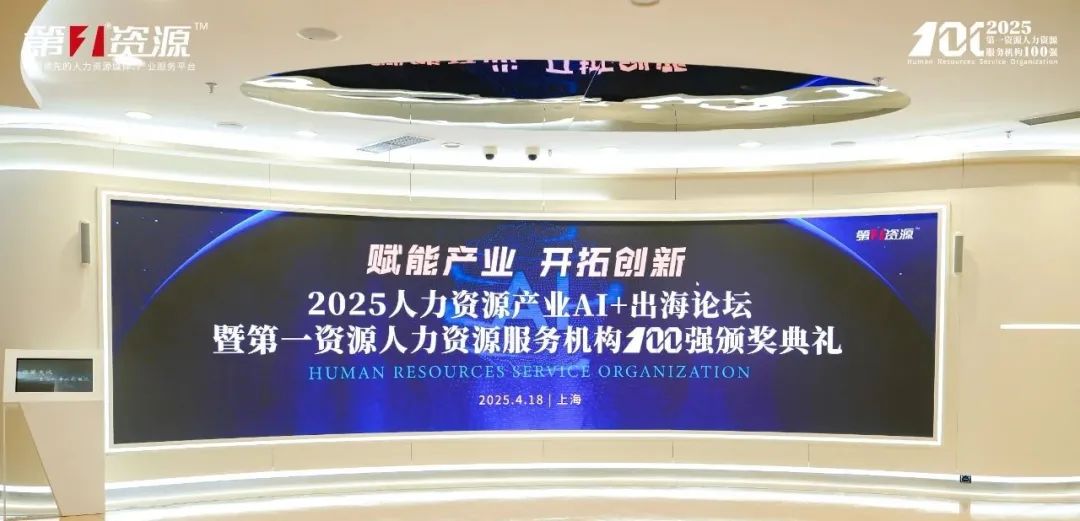 2025年4月18日,由第一资源主办,上海人才服务行业协会、上海市人工智能技术协会支持的“赋能产业 开拓创新——2025人力资源产业AI+出海论坛暨第一资源人力资源服务机构100强颁奖典礼”在上海盛大启幕。这场汇聚行业智慧的思想碰撞与荣誉盛典,正式拉开人力资源领域革新发展的序幕。