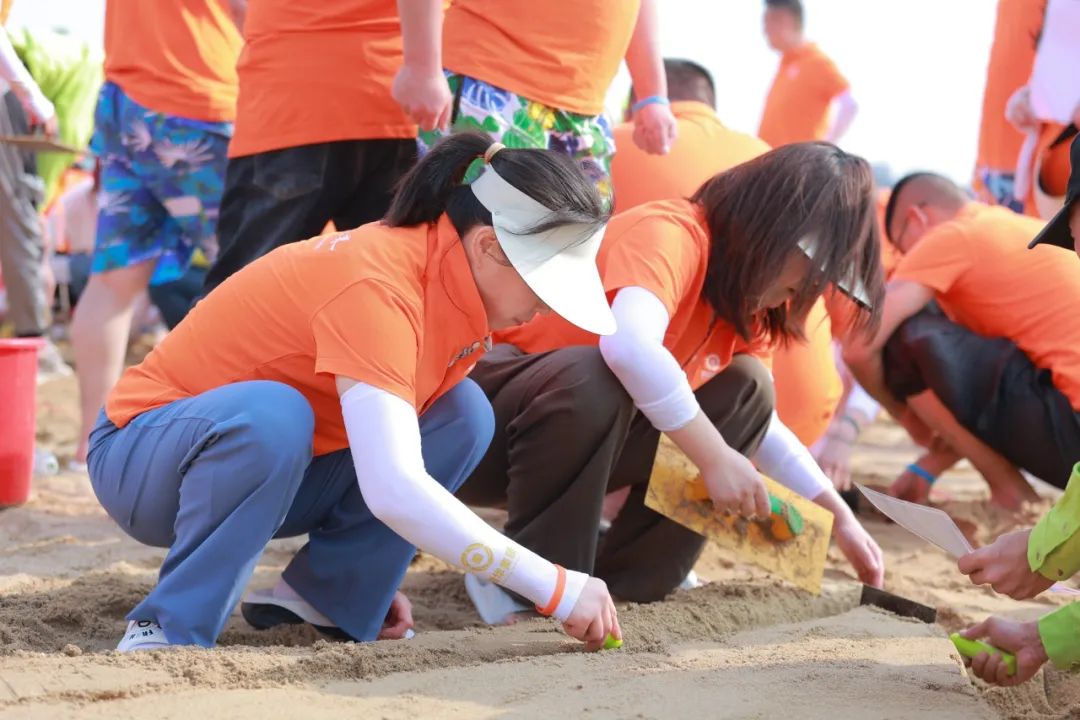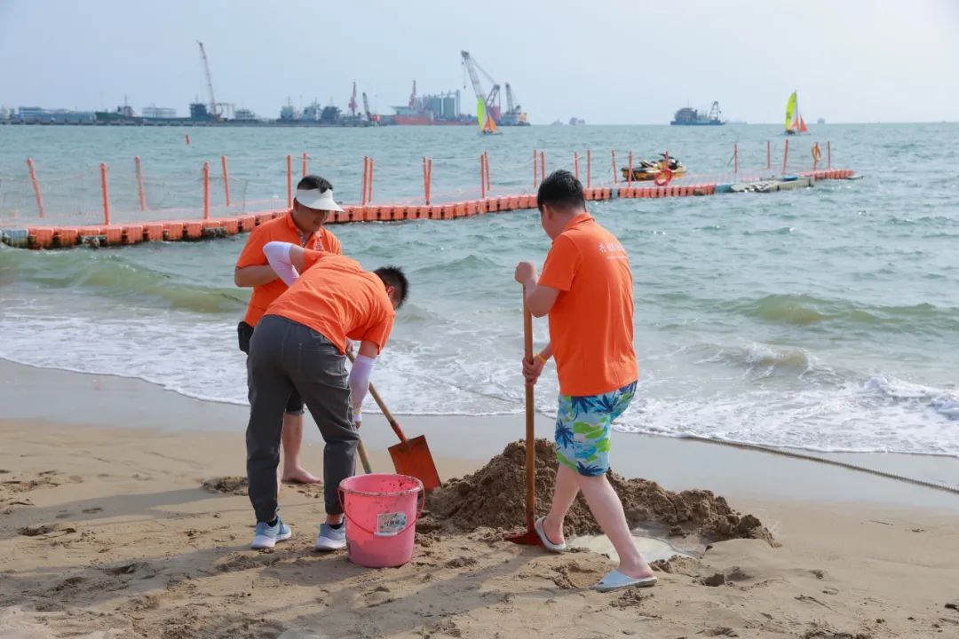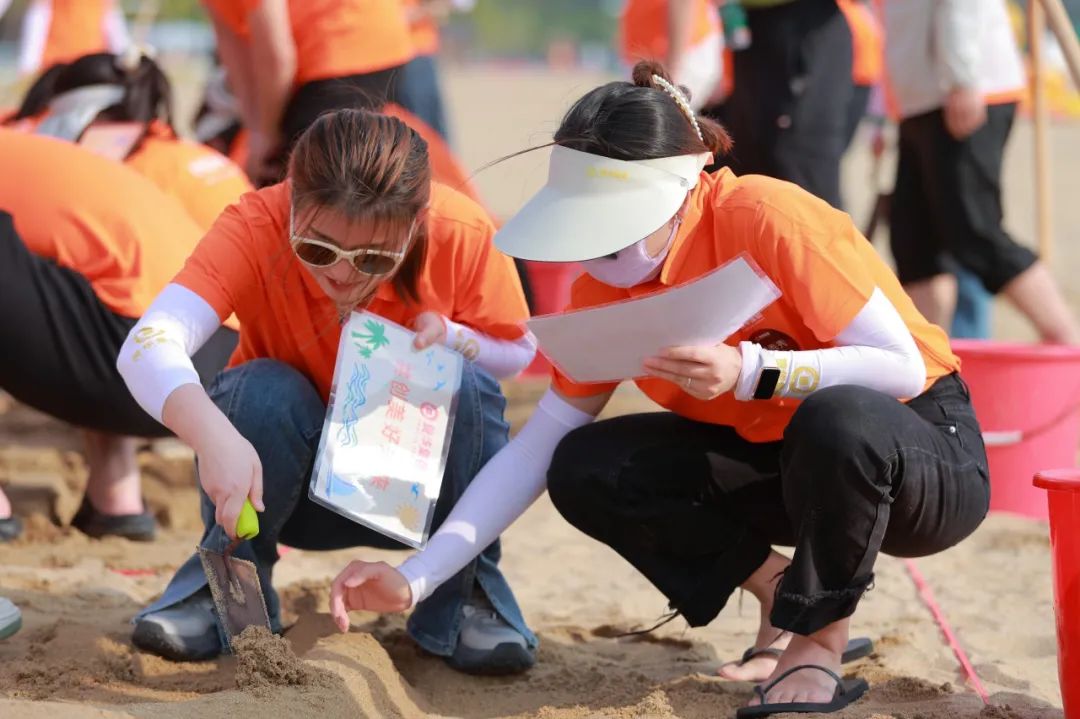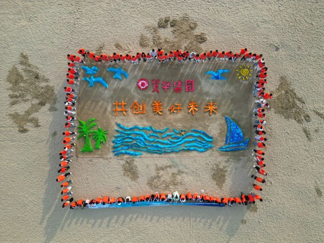 当夕阳为沙滩镀上金边,一场充满后现代意义的创作大赛如火如荼。大家在沙滩上同心协力,一起堆砌出属于赞华的完美画卷。