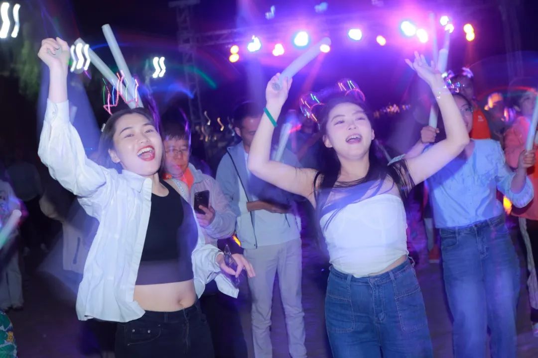 音乐如潮水般汹涌澎湃,激荡着每一个人的心弦;舞蹈则如同灵动的火焰,在夜色中跃动、闪耀。欢笑声此起彼伏,犹如天籁之音,与电音的节奏完美融合,共同编织出这个夜晚最为动人、最为绚烂的旋律。