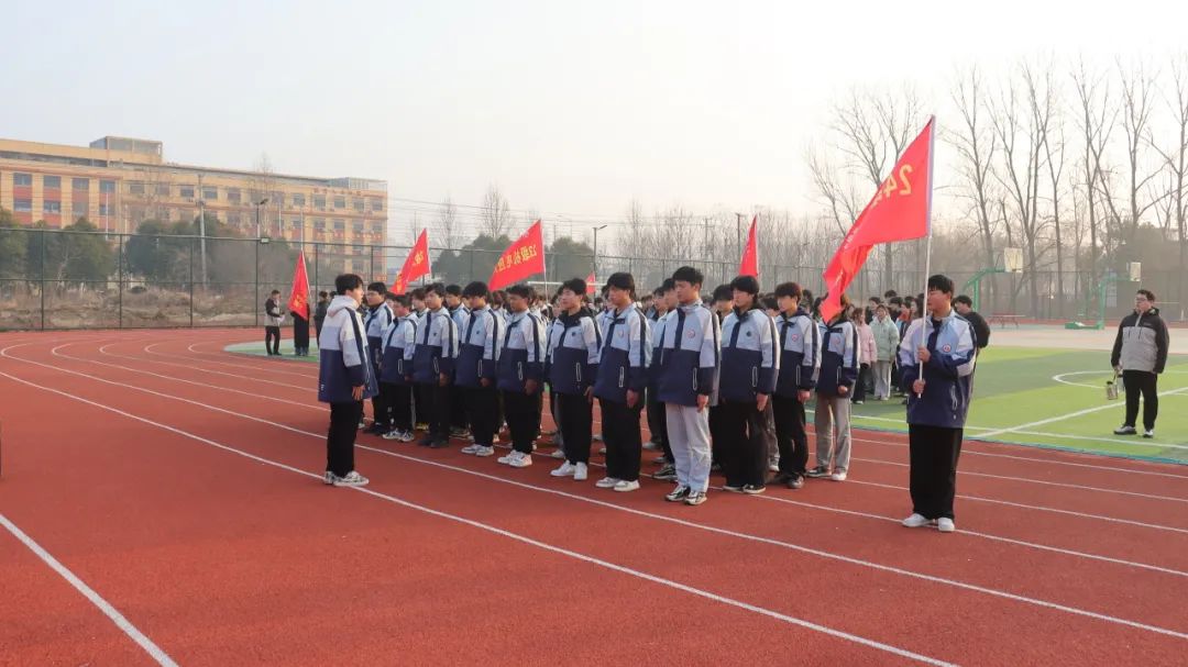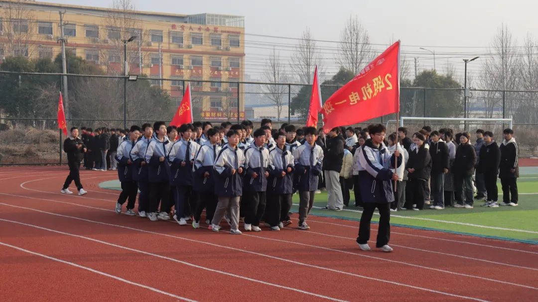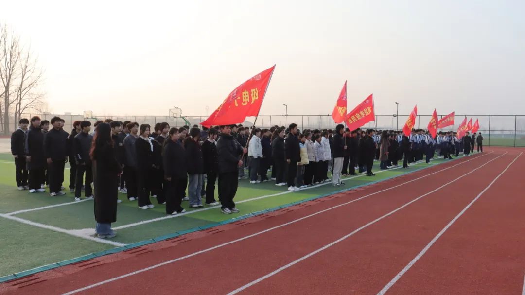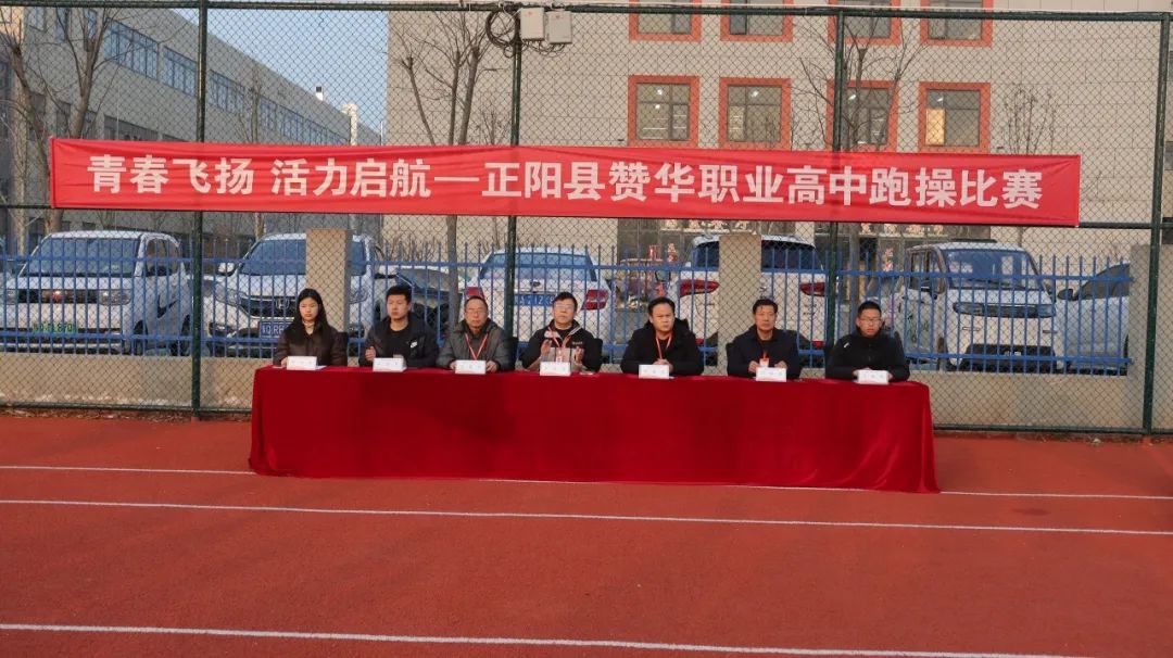 春日暖阳下,青春正当时。2月27日上午,正阳县赞华职业高中运动场旌旗招展、口号震天,"青春飞扬·活力启航"跑操火热开赛。校长温红光、常务副校长孙东舰、副校长王裕丰出席活动并全程观赛,团委书记王旭担任赛事主持,全校师生共同见证这场力与美的青春盛会。