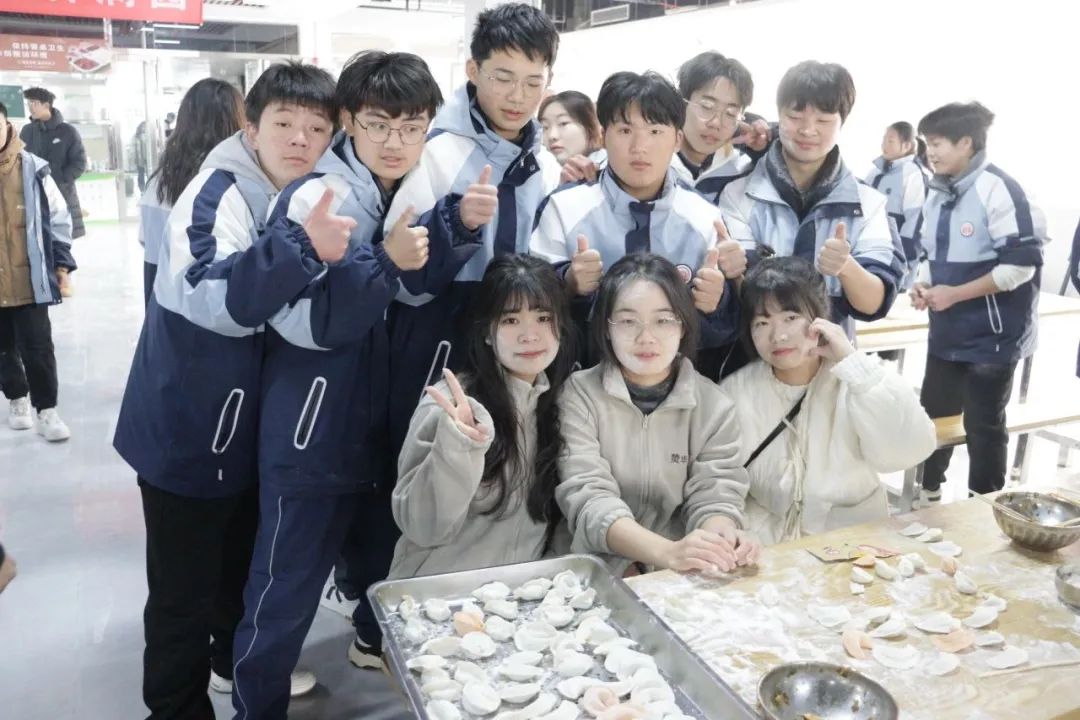 随着活动的正式开启,师生们纷纷投身到包饺子的热潮中,在宽敞明亮的食堂内,一幕幕温馨而生动的场景不断上演:有的人手法娴熟地滚动着擀面杖,将一张张薄如蝉翼的面皮轻巧地铺展开来;有的人则全神贯注地捏合着饺子皮,将各式各样的馅料精心包裹其中,每一个动作都透露出对这项传统活动的热爱与尊重。
