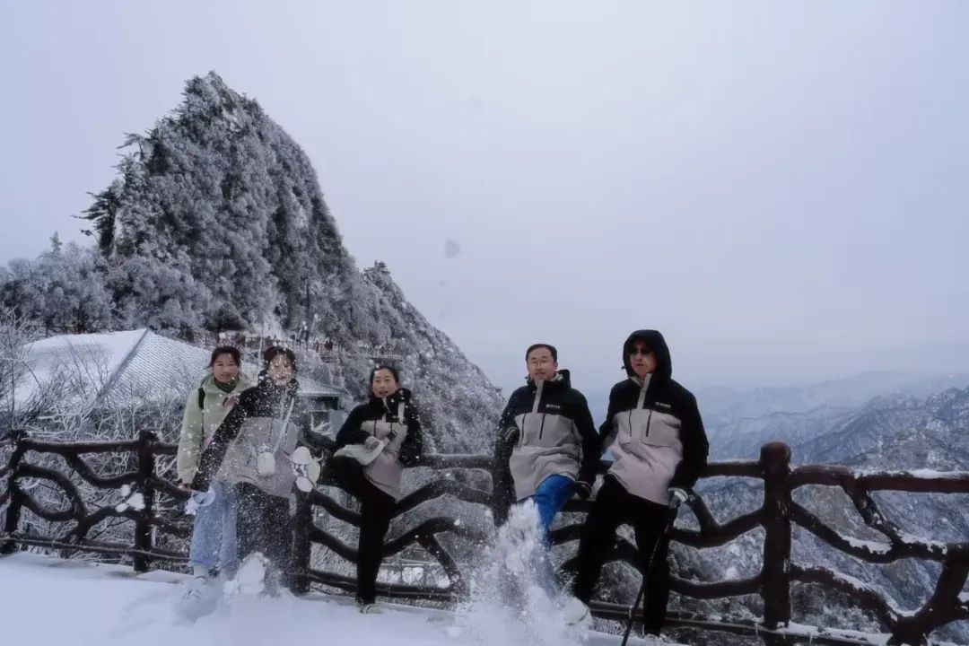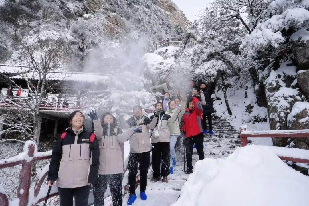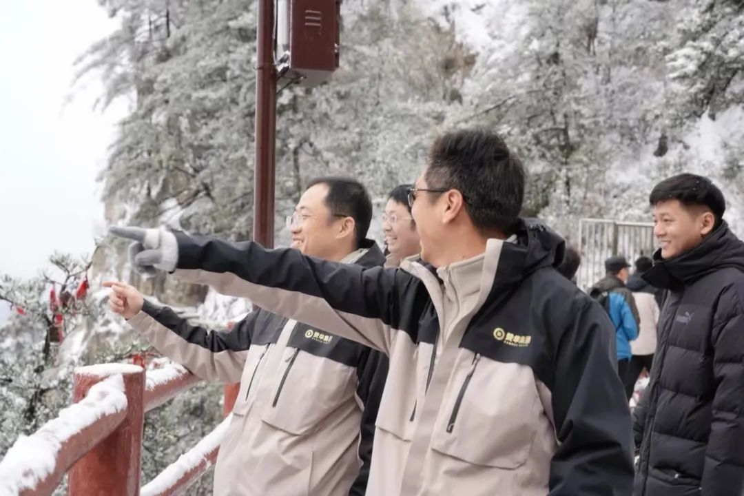 此次,老君山恰好迎来了入冬首场瑞雪,为本次团建活动添加了一抹既神秘又纯洁的光辉,这份不期而遇的美景,更似天降吉兆,无疑是大自然对事业部全体成员的一份独特而珍贵的礼物。