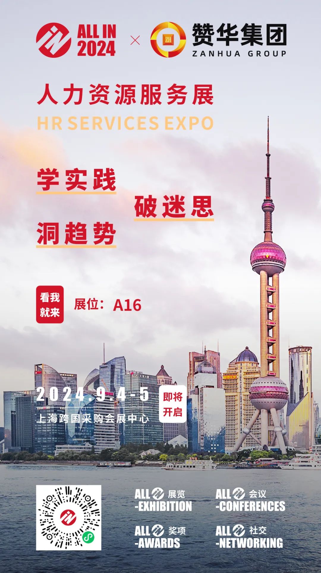 2024年9月4日-5日,由智享会(HREC)主办的“ALL IN 2024人力资源服务展”即将在上海拉开帷幕。这一盛会历时2天,设12大主题会场,将荟聚众多行业精英与创新力量,赞华集团受邀出席参展,展位号:A16!