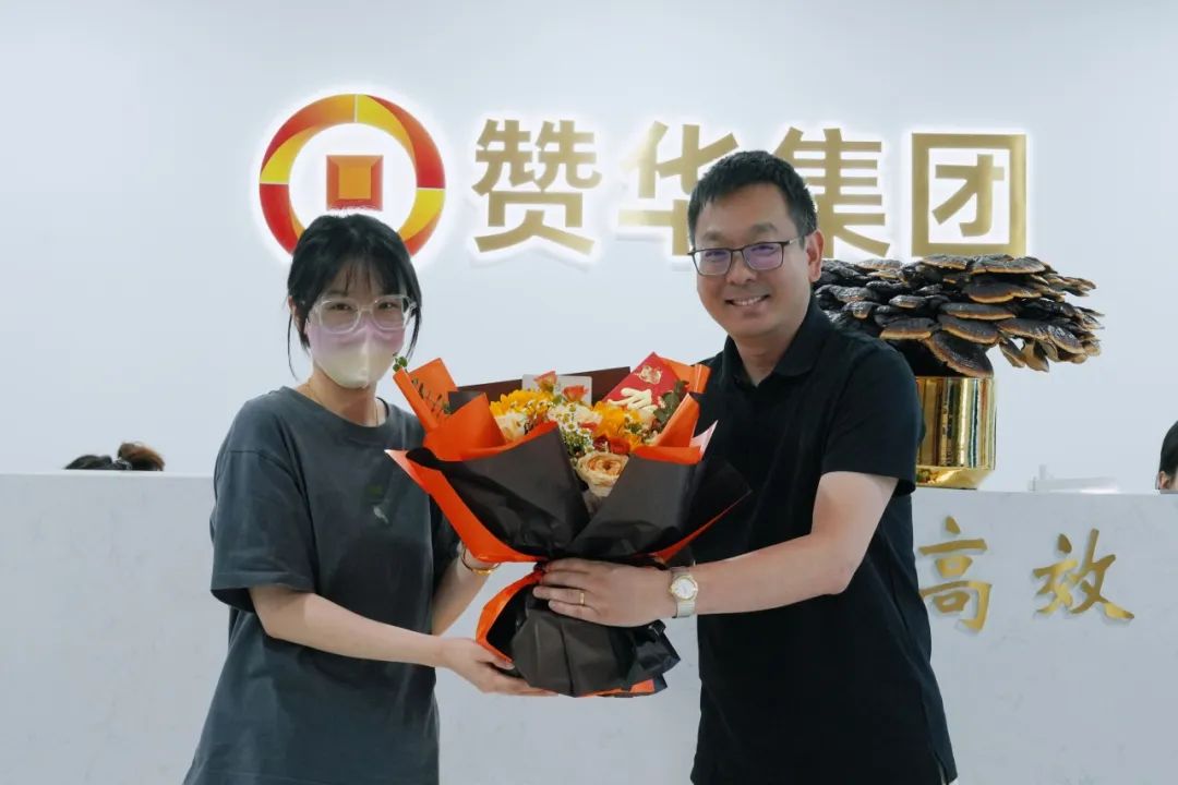 赞华集团区域销售VP刘毅、人力资源管理中心总经理王蕊,为上海总部“退伍军人”送上鲜花及美好的祝福,并表示,赞华集团全体退伍军人职工在退伍后转业不转志,立足本职岗位作奉献,为集团员工做出了榜样,值得大家学习!