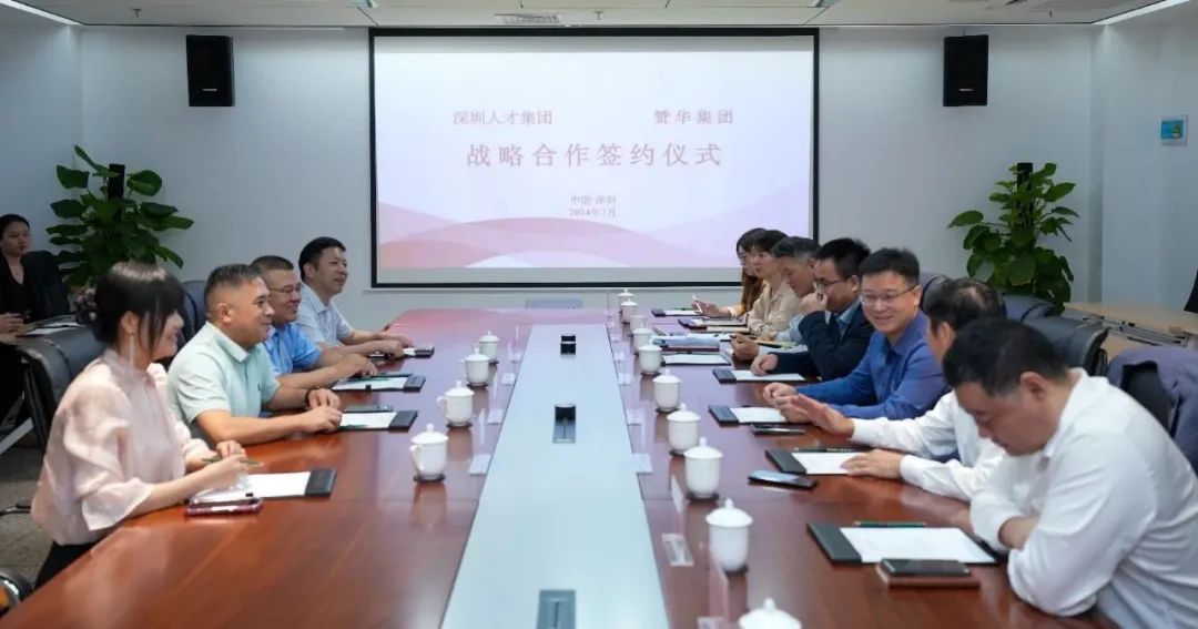 2024年7月8日赞华集团与深圳市人才集团战略合作签约仪式顺利举行。赞华集团董事长李衍建、公共关系中心总经理李怀银、运营保障中心总经理梅莉娜、华南分部区域总监吴先明,深圳市人才集团党委书记、董事长高大伟、总经理孙川、副总经理田雨、张磊等相关部门负责人参加仪式。
