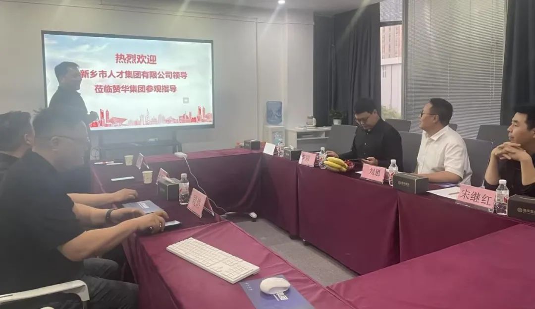2024年5月16日,新乡市人才集团有限公司总经理刘思、客户服务部总监李韬一行莅临赞华集团郑州运营中心和中原教育基地参观交流,赞华集团商务中心总经理李亚锋,政企服务中心总经理焦冬冬等热情接待。