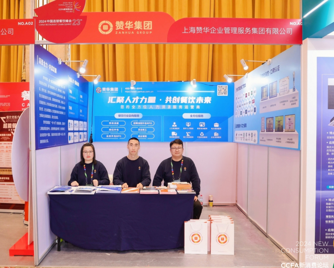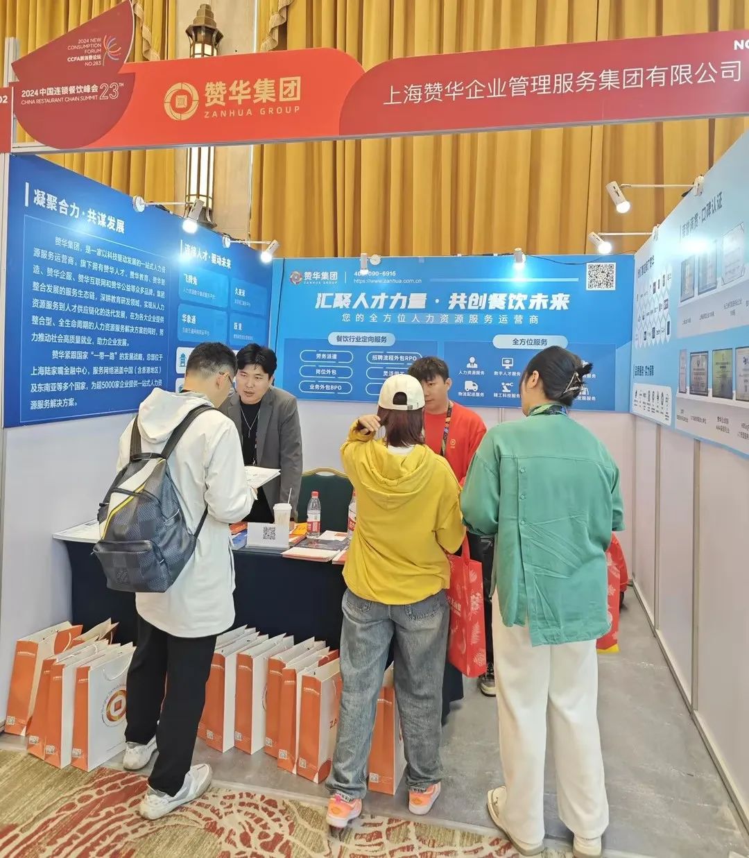 赞华集团受邀参加此次中国连锁餐饮峰会,集团以专业团队积极回应与会者的咨询,通过生动的案例分享和深入的经验交流,充分展示了赞华集团在人力资源领域的深厚积淀和专业能力。