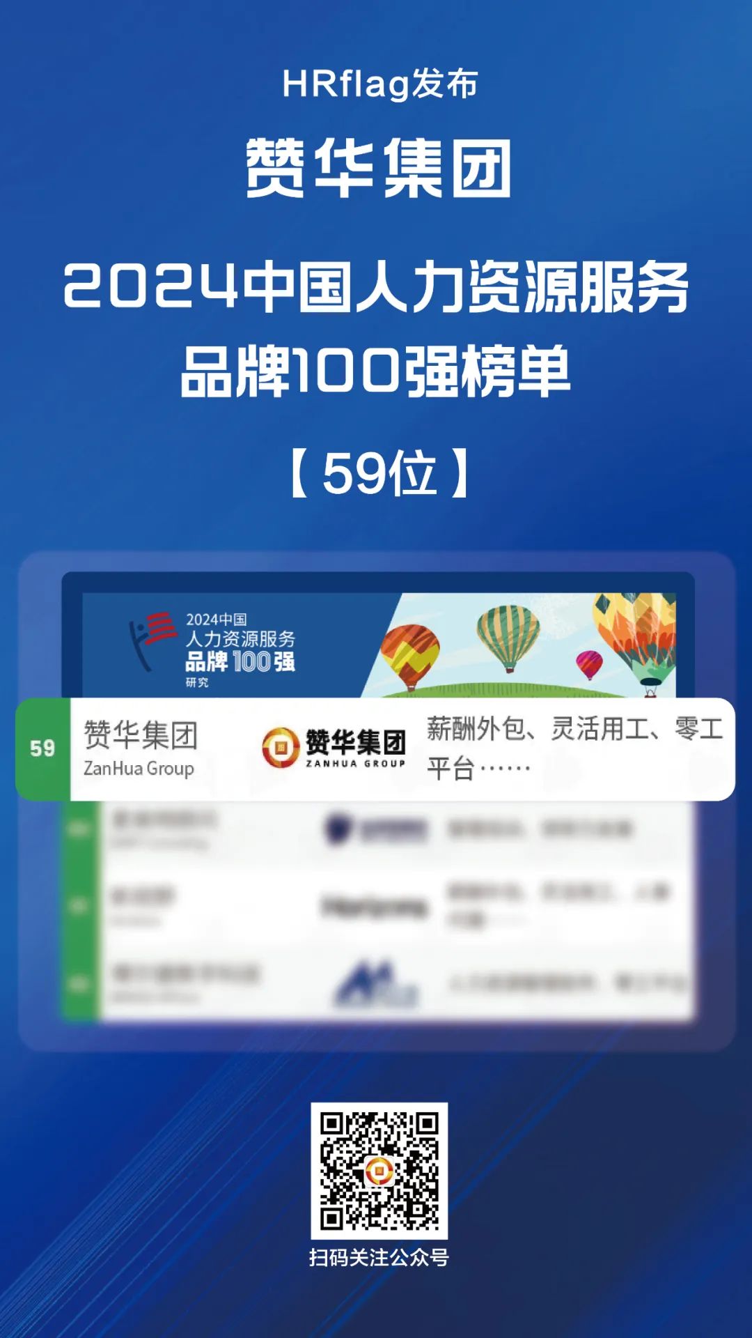 赞华集团凭借多年深耕人力资源服务行业的深厚底蕴、精益求精的专业服务能力、以及在客户与同行中积淀的优质品牌口碑和卓越影响力,在2024年度中国人力资源服务品牌的权威评选中荣耀登榜“中国人力资源服务品牌100强”。