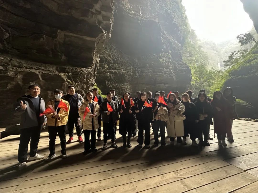阳光透过茂密的枝丫,水波折射清亮的日光。1月13日,赞华集团优秀员工们汇聚于此,共同探寻横跨七亿年时光的中国最长溶洞——贵州十二背后景区。