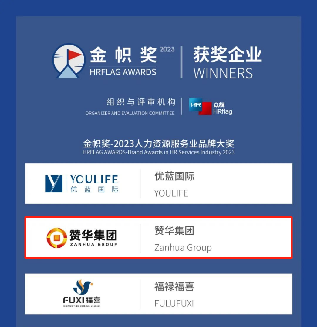 获得此项荣誉,充分肯定了在人力资源服务行业多年的辛勤耕耘、专业的能力和领先的品牌地位。这份荣誉离不开赞华家人们的努力与付出,也离不开我们客户的肯定、信任与支持。赞华深知每一次荣誉的获得,不只是对过往成绩的总结与肯定,更是对今后奋斗方向的指引和驱动。